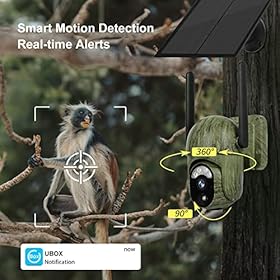 【Remote Access via Smartphone and 2K Live Streaming】Whether you’re at home or outdoors, easily access and control this solar-powered tracking camera using your smartphone. The UBox app allows you to enjoy real-time 2K video streams and images captured by the wireless game camera. Share these captivating moments with your loved ones effortlessly.