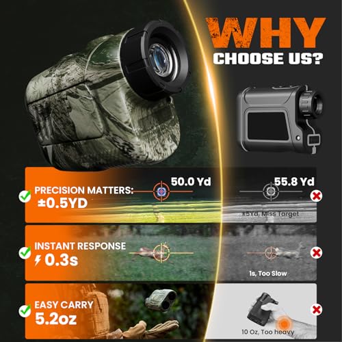 【Precision & Speed Redefined】Experience unmatched accuracy with 0.5yd precision and lightning-fast 0.3s response time. Powered by the latest 2025 processor, our advanced algorithms ensure smarter, more efficient measurements. With a range of 656yd, it’s perfect for 90% of hunting scenarios. Hunt smarter, hit harder