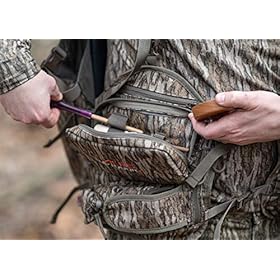 ALPS (Active Lifestyle Products and Services) OutdoorZ is dedicated to exceeding your expectations, and the functional design of the Impact Turkey Vest gives hunters a versatile, lightweight, sit-anywhere turkey hunting vest—ready at the flip of a seat. The Impact Vest boasts numerous pockets for a variety of calls—a slate call pocket for two slate calls and three strikers, a silent box call pocket, five shotgun shell loops, and three diaphragm call pockets. A removable front pocket features a shoulder strap for run n’ gun style hunts and the seat conveniently folds away or completely detaches when not in use. The Impact Vest also includes a game bag on the back of the vest which features a pocket inside for decoy stakes. The Impact vest provides hunters with all the convenience of a metal-frame vest while remaining lightweight and versatile and helping them blend seamlessly in with their environment. Available in Mossy Oak Obsession and Mossy Oak New Bottomland camouflage patterns.