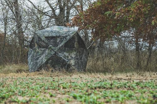 DURABLE & STEALTHY CONSTRUCTION: Made with a Durashell Plus 150D fabric shell and a matte finish, this blind is built to withstand tough conditions. The Mossy Oak Country DNA XL camouflage exterior helps it seamlessly blend into its environment.