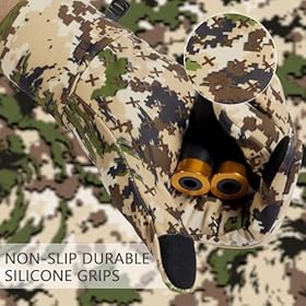 Silicone grip patterns on the palm and fingers keep your hunting tools or other gadgets from slipping out of your hands; With built-in anti-lost clip