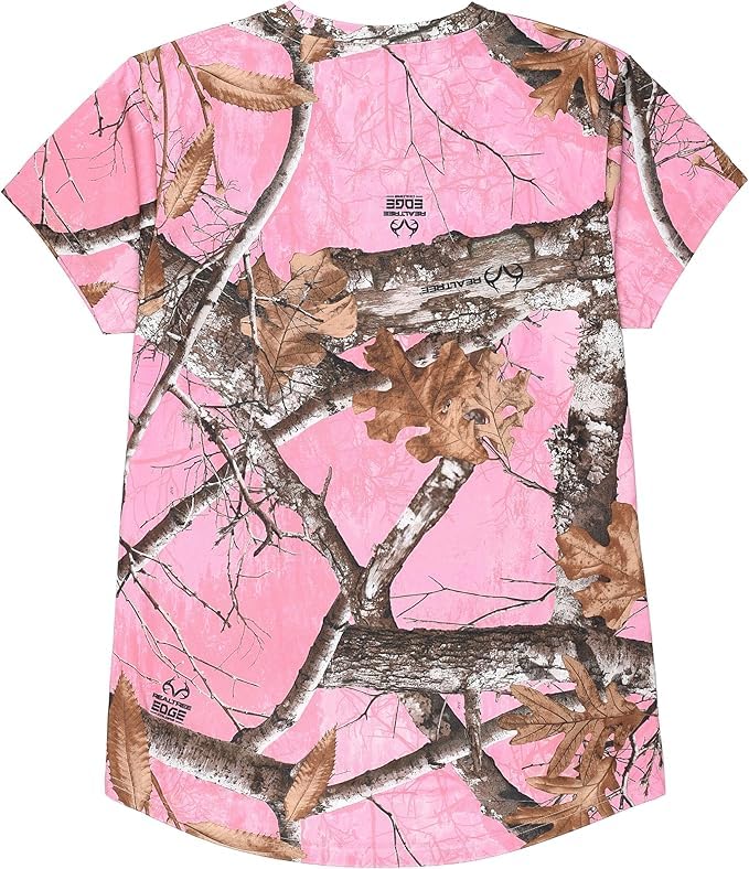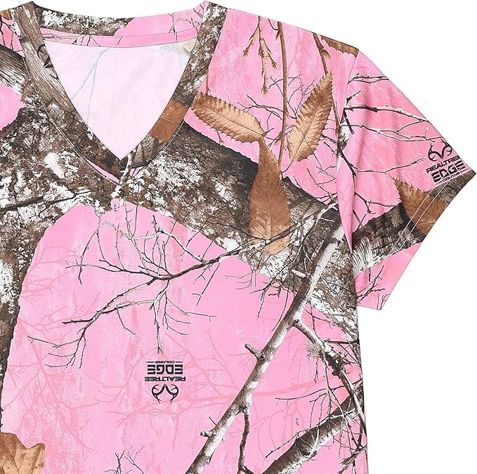 Realtree Edge Women’s Pink Camo V-Neck Performance T-Shirt – Short Sleeve 100% Polyester Hunting & Outdoor Tee