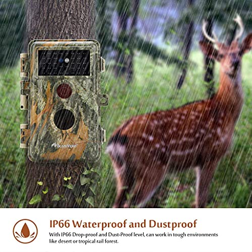 1. HD Image & Video and PIR Function: Capture max 32MP images and 1296P videos when motion detected (monochrome at night). In “Cam + Video” mode, images and videos could work together at every trigger. SD card support up to 512GB (not included in package). 70° PIR sensor detect wider and night vision up to 75ft/23m.