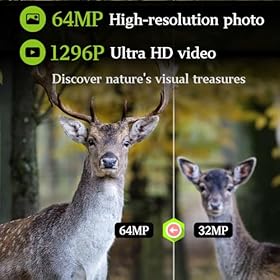 SHARPER 64MP PHOTOS & 1296P HD VIDEOS: With 64MP resolution, you get noticeably sharper images than standard 48MP trail cameras. Higher pixel density helps reduce digital noise—especially in low-light conditions—for cleaner, balanced exposures day or night. Also captures 1296P HD videos with H.264 encoding in MP4 format, ready to share on YouTube or Facebook without conversion. Supports SD cards up to 512GB (not included) for extended monitoring.
