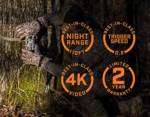 [TECH SPECS] 4k 20FPS Video, 110ft night range No-Glow, 2.1″ Color Viewscreen, 4k Single Sensor, 0.2s trigger speed, 1s recovery rate