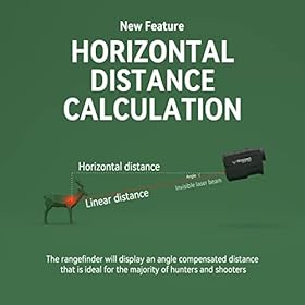【Horizontal Distance】Mode 1 is specially designed for hunting and will display straight-line distance, horizontal distance, and angle. Mode 2 is specially designed for Golfing and provides slope compensation and flag lock function. The rangefinder also has a scanning function, which is convenient for you to quickly catch prey. Last one is Speed mode, Press “M” Button to change measure mode.