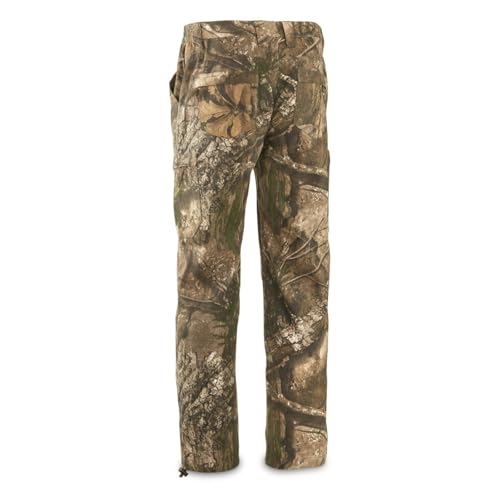 MADE FOR THE WILD Guide Gear 6-pocket hunting pants will be your new favorite addition to your collection of camo hunting clothes for men. These camouflage pants were made to endure the wild, from taking tree branches, to brush hits, you can count on our resilient cotton material to keep you protected from the abuse you encounter. Run-and-gun turkey hunts. Spot-and-stalk hunts. Early-season bowhunts from your stand. Setting up your game cam. Chores around the house. Don’t be scared to abuse them. That’s what we built ’em for. Camo concealment Keep yourself discrete with your choice of Mossy Oak or Realtree camo patterns. We know how important your hunting strategy is to you, so we crafted these pants with your hunting goals in mind. These pants will keep you quiet when it comes to your approach, so you can make sure you don’t scare any potential game away. KEY FEATURES Fabric: 60/40 cotton/polyester Pockets: 2 cargo, 2 hand, 2 back Inseam: Regulars are 32″, Talls are 34″ Special features: Drawcord ankle cuffs Elastic waist for a comfortable fit