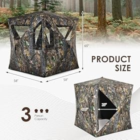 🦌 【Accommodation for 2-3 Individuals】With an overall size of 58″ x 58″ x 65″ (LxWxH), our ground blind comfortably accommodates 2-3 people. The deer hunting blind offers ample room to place chairs for hunting, allowing you to patiently and comfortably observe your prey.
