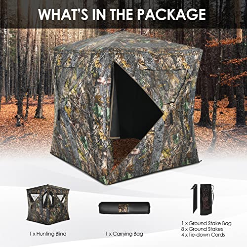 🦌 【Effortless Installation and Portability】Thanks to its innovative pop-up design, our hunting ground blind can be set up or taken down within seconds. Weighing 12.5 lbs, the hunting blind also comes with a convenient carrying bag for effortless transportation.
