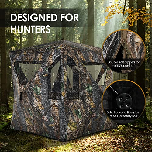 🦌 【 Durability & Shooting Hole】Crafted with a sturdy steel structure and durable oxford fabric, the deer blind has waterproof functionality and long-lasting durability. Facilitated by round shooting holes and zippered windows, enables easy shooting from any angle.