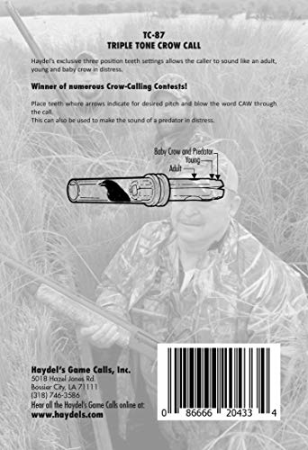 Haydel’s exclusive 3 position teeth setting allows caller to sound like an adult young and baby crow in distress.