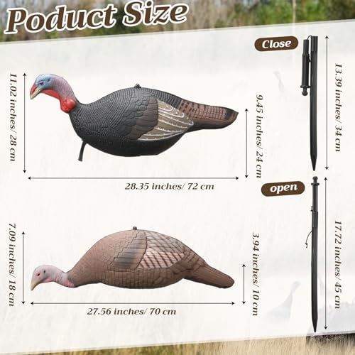 Lightweight and Portable Size: our turkey hunting decoys size is measured at 13.4 inches x 5.5 inches x 6.7 inches/ 34 cm x 14 cm x 17 cm, which is a suitable size for daily use, and its portability makes the turkey hunting decoys easy to carry it, allowing to choose more hunting places