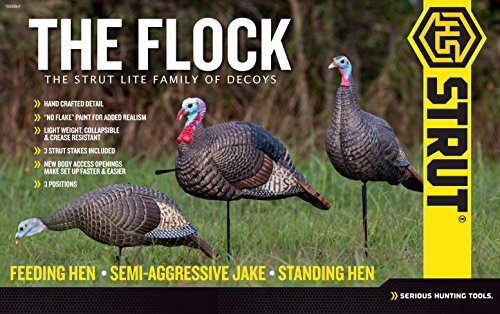 HS STRUT-LITE FLOCK DECOYS – The Strut-Lite Flock decoys by Hunters Specialties is a pack of three decoys including the Jake gobbler decoy, the Upright Hen decoy and the Feeding Hen decoy which work better together than separately