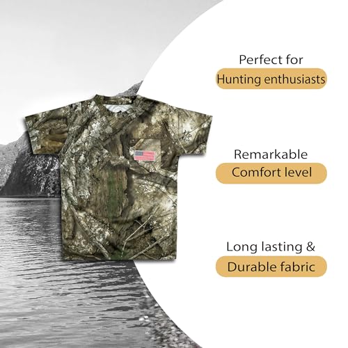 Let your child showcase American pride with the Mooselander Kids Patriotic Camo T-Shirt. Designed for both comfort and durability, this high-quality tee features a bold embroidered USA flag on a classic camo pattern, making it perfect for young adventurers. Whether exploring the outdoors, enjoying a family camping trip, or simply looking for a stylish everyday tee, this shirt delivers style and function. Made by Mooselander, a trusted name in textiles for over 50 years, this t-shirt reflects our commitment to quality craftsmanship. As licensed wholesalers for major camo brands like Realtree & Mossy Oak, we ensure that every piece meets the highest standards. Crafted from soft, breathable fabric, this durable tee is designed to keep kids comfortable all day while withstanding active play’s wear and tear. Perfect for outdoor activities, patriotic celebrations, or casual wear, this camo t-shirt is a must-have for young explorers who love adventure and country pride.