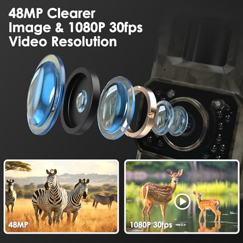 Trail Camera Lens: 48MP Still Image and 1080P Video 30fps. PH960W Game Camera with a wide 100° view angle and a cutting-edge image sensor. Featuring advanced H.264 video encoding technology without video conversion, directly shared to social media.