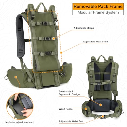 Modular frame system – Fully removable frame can be used independently, secured to the pack’s top hat, or paired with the MOXULE 40L/60L/80L hunting backpacks for expanded capacity and mission flexibility.