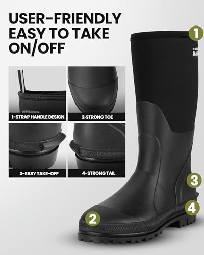 ABSOLUTELY WATERPROOF — OutdoorMaster Waterproof Hunting Boots, made of durable neoprene and natural rubber, offered 100% waterproof and engineered for the wet environments.