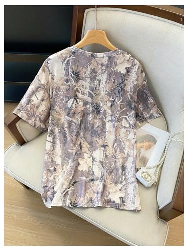 RoseSeek Women’s Camo Shirt Maple Leaf Print Short Sleeve Camouflage T Shirt Summer Camo Tee Top Streetwear