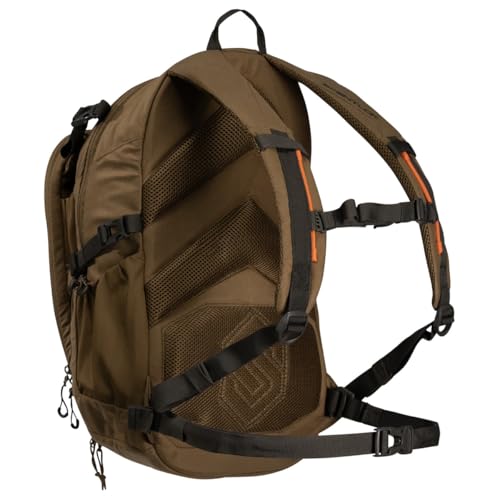 VERSATILE Storage Options: With two top-loading capacity pockets, compression straps, and a 2-way bottom zipper, this backpack offers flexible storage for all your hunting gear. The two zippered compartments with six internal pockets and two exterior side pockets provide ample space for easy organization and quick access. This pack measures 18.5″ H x 9.5″ W x 5.5″ D.