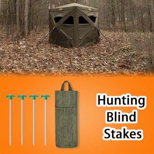 Seaponer Hunting Blind Stakes, Heavy Duty Metal Tent Pegs Ground Blind Anchor for Hunt Trip, Hunting Blinds Drilling Stakes for Deer Turkey Dove Bowhunter, 4 Pack