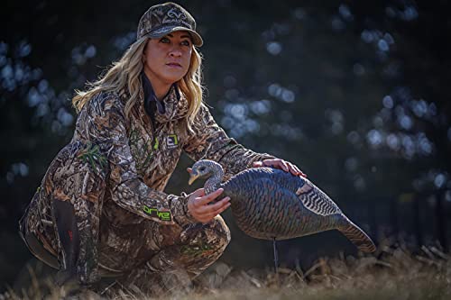 RELAXED FEEDING HEN DECOY: Deadly Head & Feather Colors. Good for you, just plain bad for Ole’ Tom. Includes a 2-Piece Motion Stake. Inner body stake attaches and stays in decoy and Heavy duty stake has foot step for easy setup in the hardest dirt