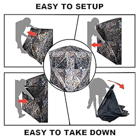 HIGH QUALITY: Sturdy fiberglass frame and 210D polyester with a black interior PU coating give the hunting tent great durability and weatherability