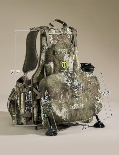 FUNHORUN Turkey Vest with Kickstand and Seat Cushion, Camo Turkey Hunting Vest with Detachable Adjustable Legs Kickstand, Game Pouch, Built-in Seat Frame, for Youth, Men, Women