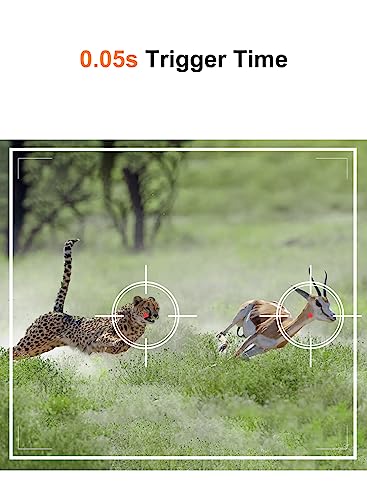 Long Distance Fast Trigger: Hunting camera trigger time of only 0.05-0.3S, PIR distance of up to 1-98 FT,Once the moving target enters the PIR scanning range, it will trigger the camera to take pictures as fast as possible, so you won’t miss any exciting moments.