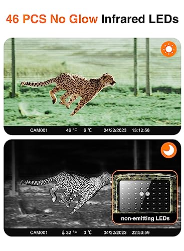Clear Night Vision Shooting:The game camera is equipped with 46 non-illuminated infrared LEDs that can capture clear black and white night images within 98 feet without disturbing the animals.