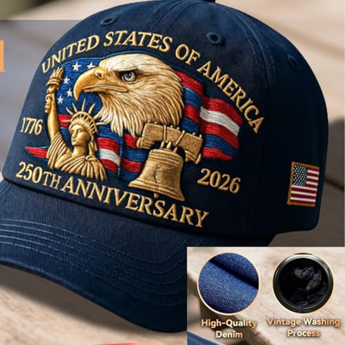 - Commemorative Design: Join in the celebration of the U.S. 250th anniversary with this 250th anniversary hat. A stylish addition to any wardrobe, the U.S. 250th hat allows you to express your patriotism while paying homage to 250 years of American freedom and history