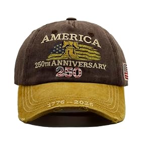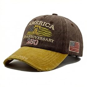 USA 250th Anniversary Hat, Adjustable 250th Anniversary Printed Patriotic Baseball Caps, Tribute Retro Washed Hat