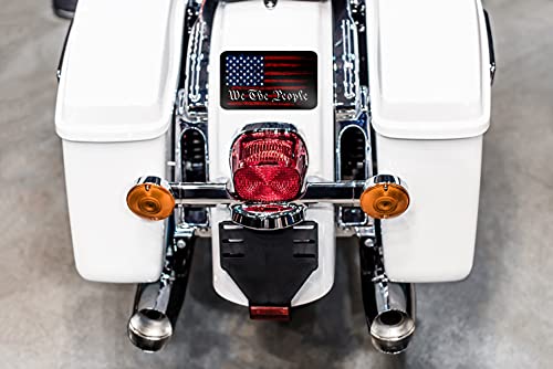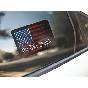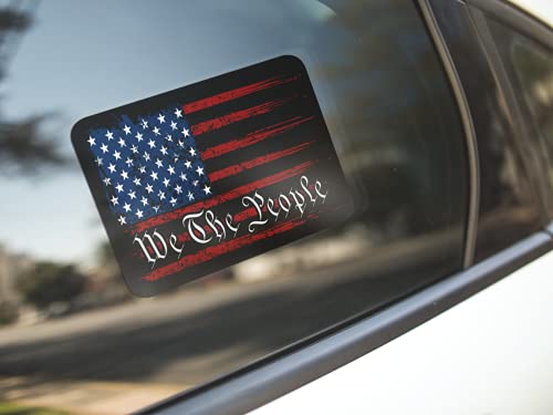 We The People all weather vinyl decal. Show your patriotism with this all weather 7 inch American Flag We The People decal. Decal is suitable for indoor and outdoor use (waterproof). Decal size is 7in x 4in. Self adhesive backing. Easy peel and stick application. Suitable for cars, trucks, motorcycles and laptops. Sticks to any flat surface including car windows, metal and plastic. This decal makes the perfect gift for the patriot in your life. Proudly Made in the USA.