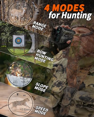 4 Versatile Modes for Hunters: M1 Range Mode for straightforward distance measurement, M2 Bow Hunting Mode designed to provide accurate range data for bow hunters, M3 Slope Mode for angle-adjusted distance readings that enhance range calculations, and M4 Speed Mode to track moving targets in real time.