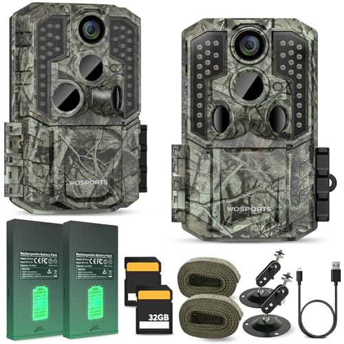 【Rechargeable Lithium Battery & SD Cards Included】Each rechargeable trail camera runs on a 2200mAh lithium battery, reducing frequent battery replacements and ongoing costs. Package includes 2 rechargeable batteries, USB Type-C cable, and 2 SD cards for ready-to-use setup.