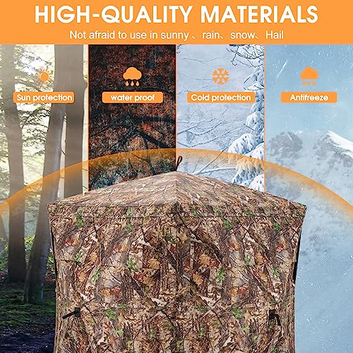 【Large Size】XProudeer Hunting Blind Fits 3 People, with 67″ Center Height, Hub to Hub 75″ X 75″, and Floor Space 58″ X 58″.